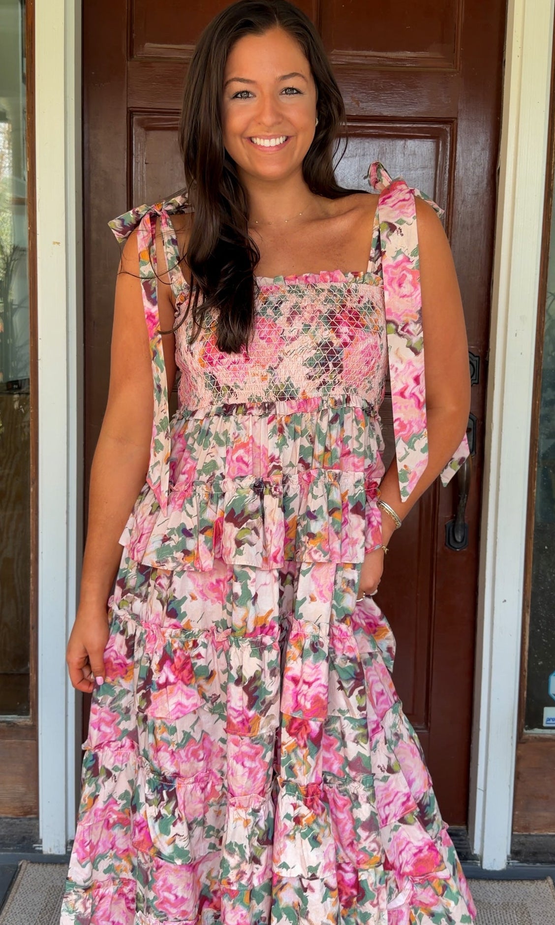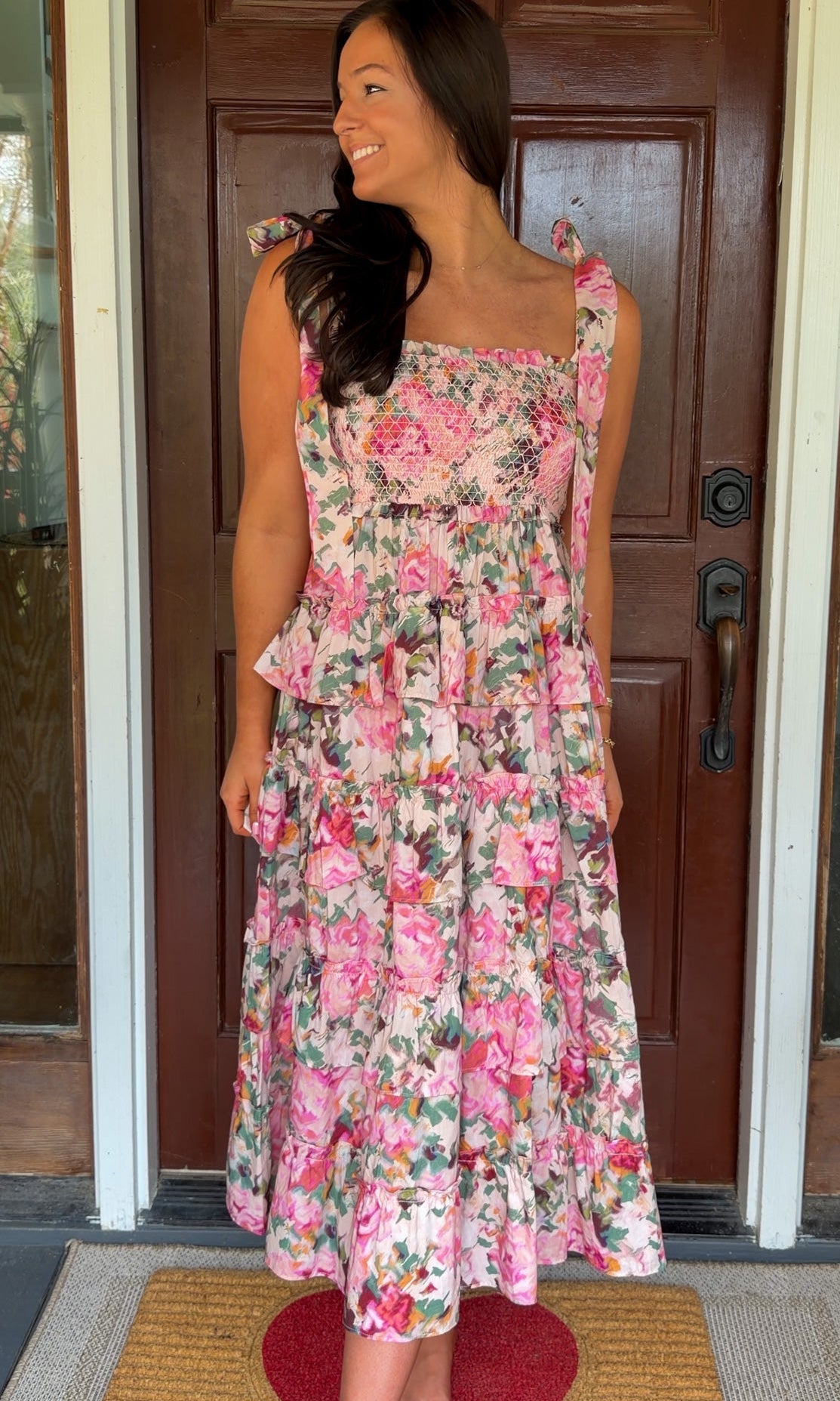 The Isabelle Floral Midi Dress is one of those pieces that instantly feels special the moment you slip it on. Designed in a soft cotton voile with an allover floral print, it features a fully smocked bodice that offers a comfortable, flexible fit while creating a flattering, feminine shape. The flowy midi skirt drapes effortlessly and is finished with side seam pockets — because we love a dress that’s both pretty and practical. This is the kind of dress you’ll reach for when you want to feel put together without feeling overdone. Pair it with sandals for daytime plans, dress it up with heels for dinners and events, or layer with a denim jacket for cooler weather — this is a year-round favorite you’ll wear again and again!