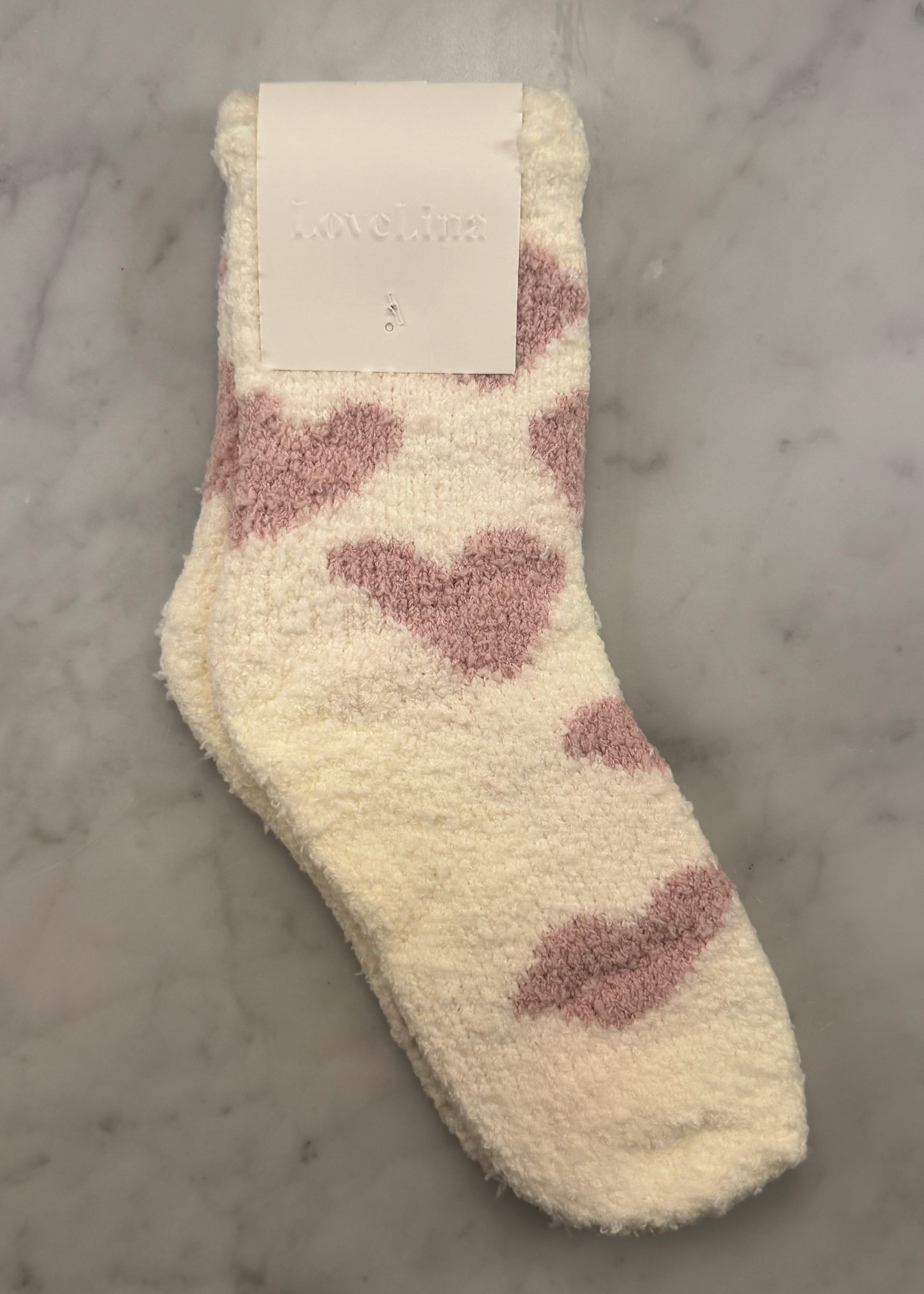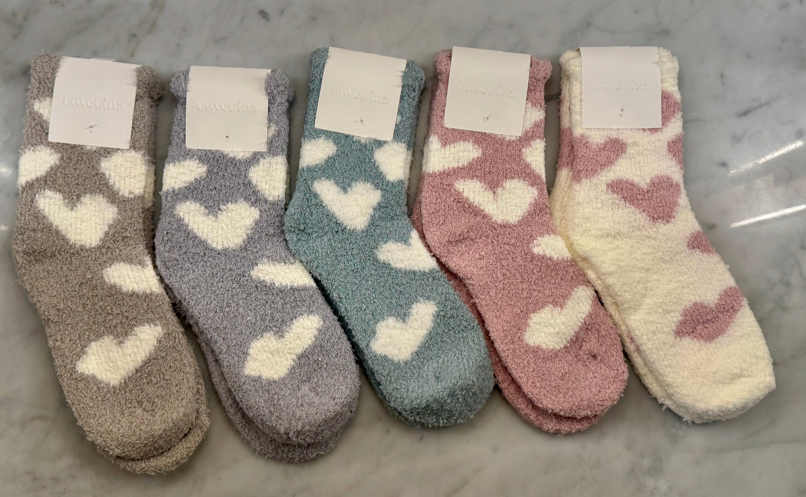 Cozy up with our Fuzzy Socks - Hearts! These fuzzy socks feature adorable hearts and are perfect for the holiday season. They're comfy, cozy and make great stocking stuffers or gifts. Stay warm and stylish with Fuzzy Socks - Hearts!