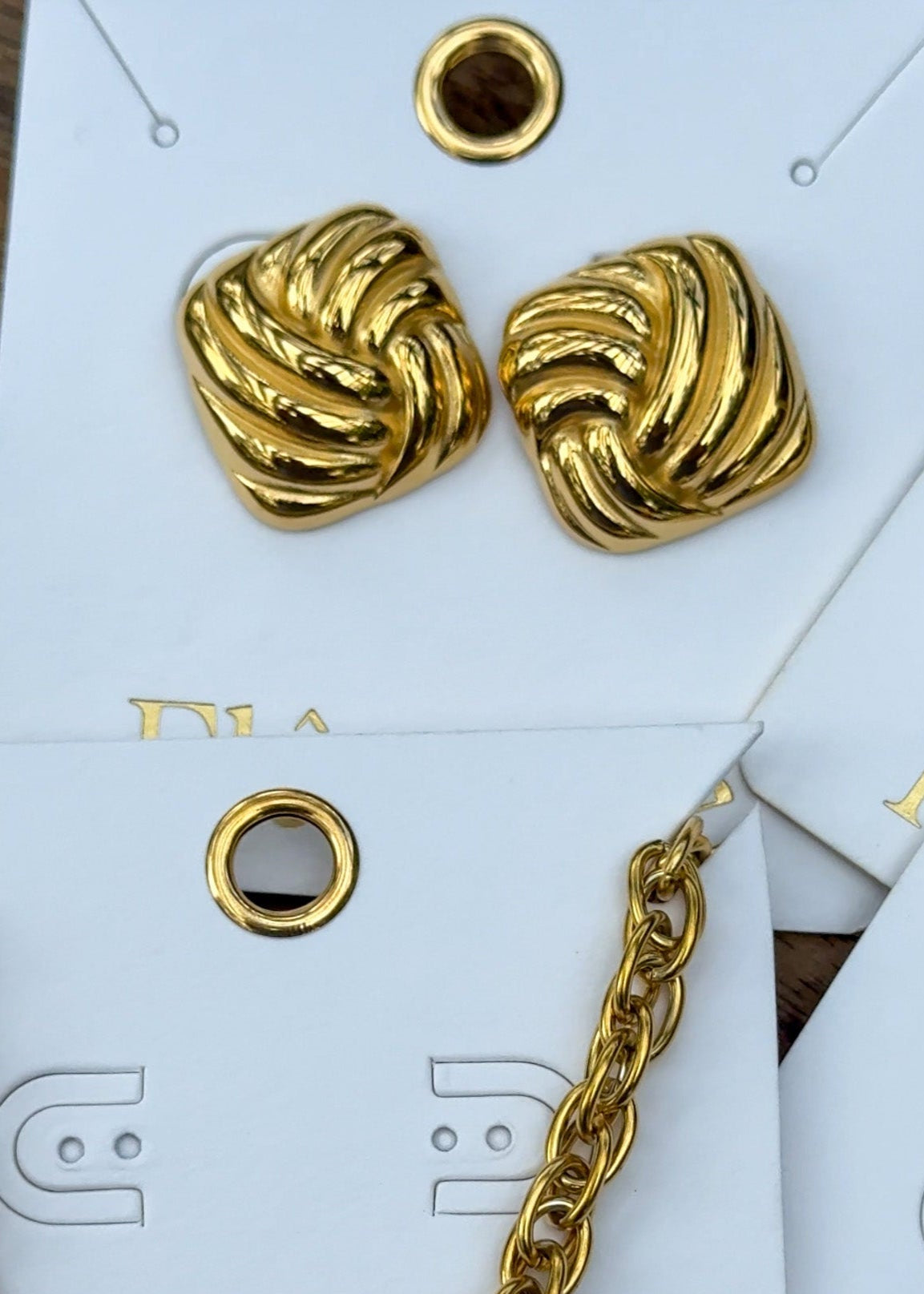 Margot Earrings – 18K Gold Non-Tarnish Wavy Square Studs