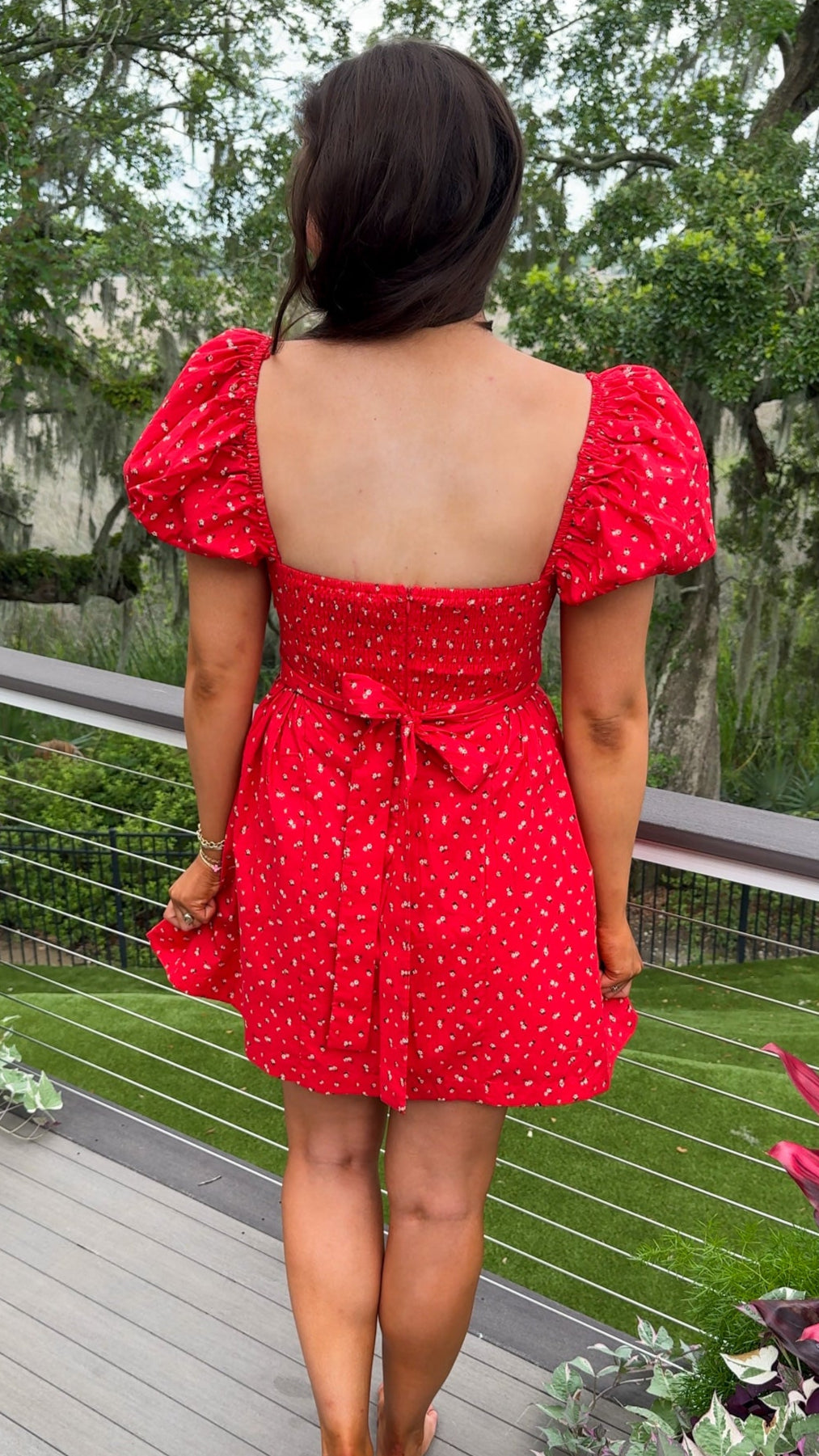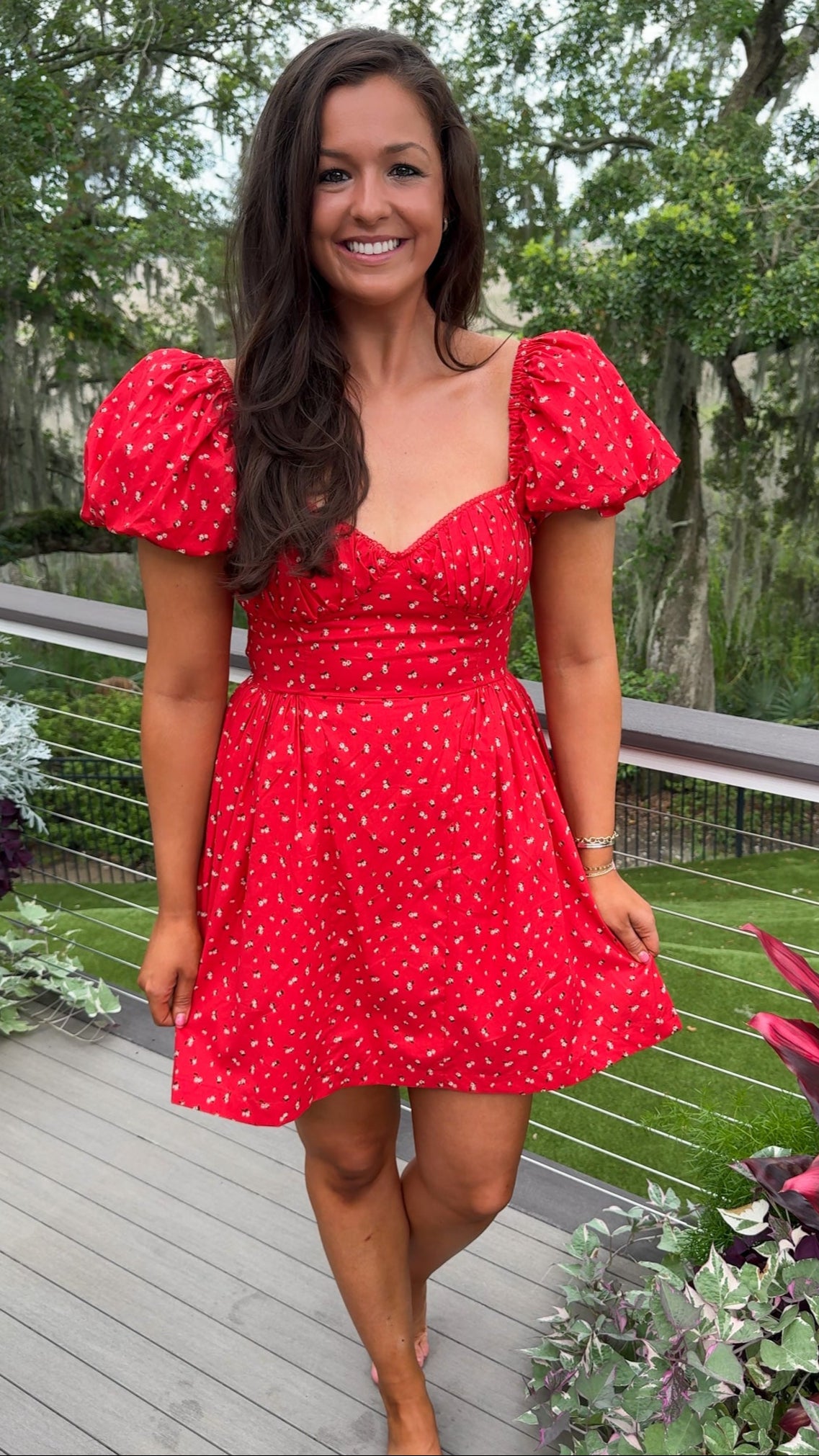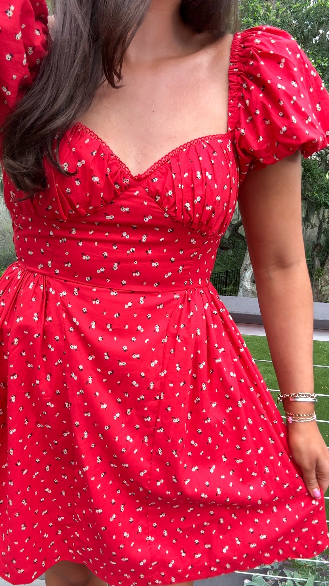 Tatum Dress – Red Floral Sweetheart Puff Sleeve Mini