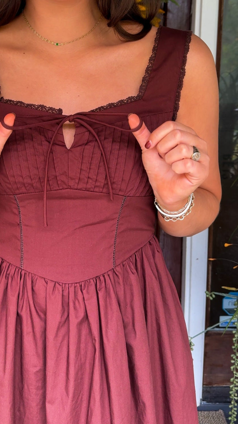 Crafted from soft, breathable cotton, the Jane Dress combines structure with flowy ease. The ruched bodice gently flatters your shape, while a front keyhole tie adds subtle, feminine charm. Wide straps are adjustable with buttons, letting you find the perfect fit.