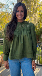 Natalie Floral Top in Olive Green
