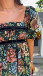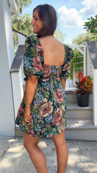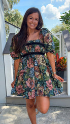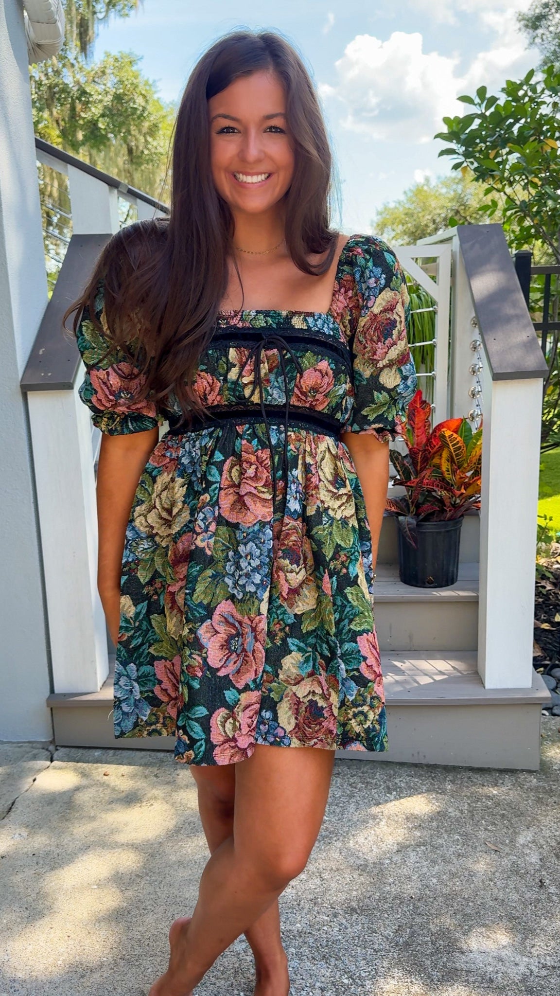 Raelynn Floral Mini Dress with Lace & Velvet Trim Details