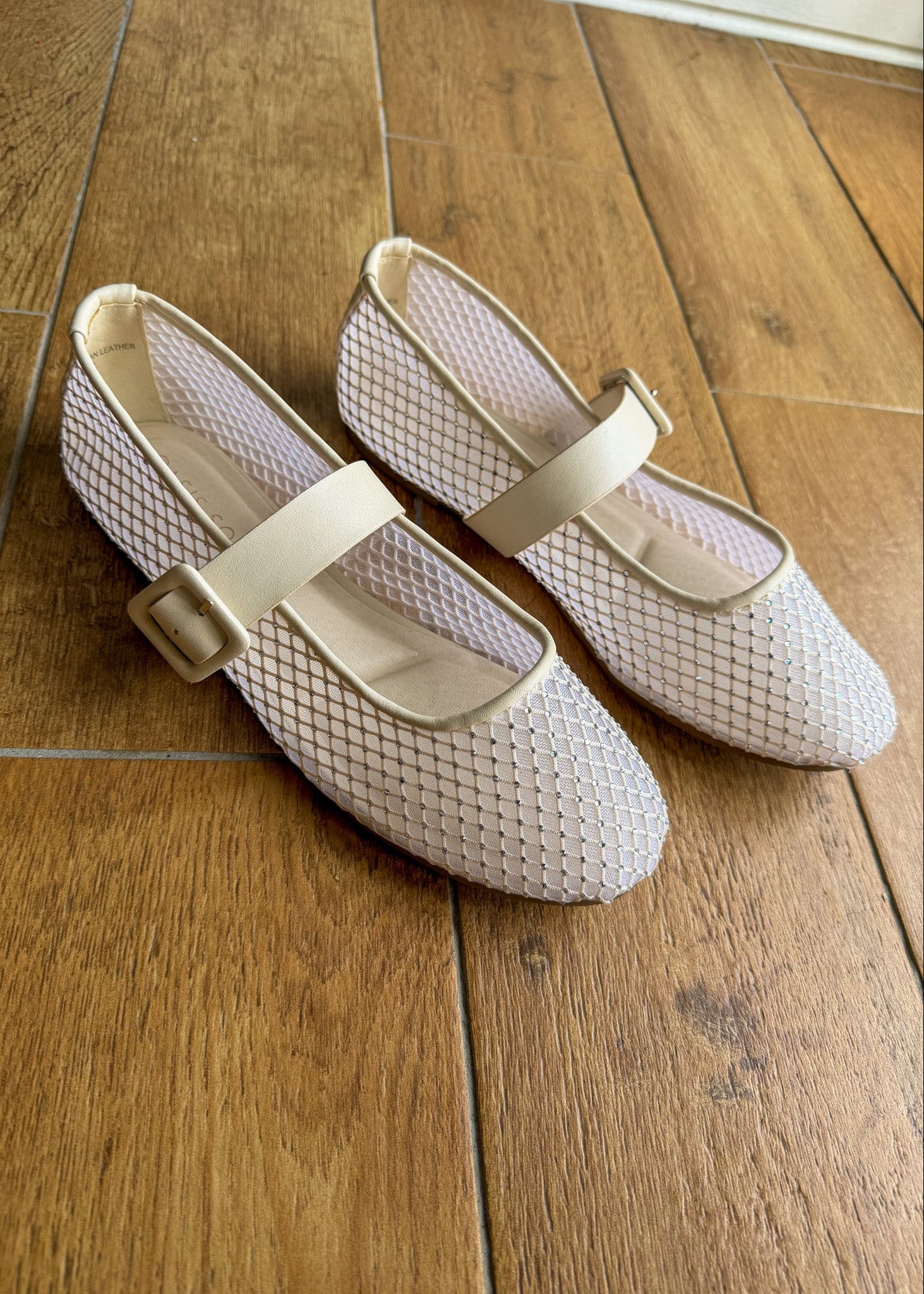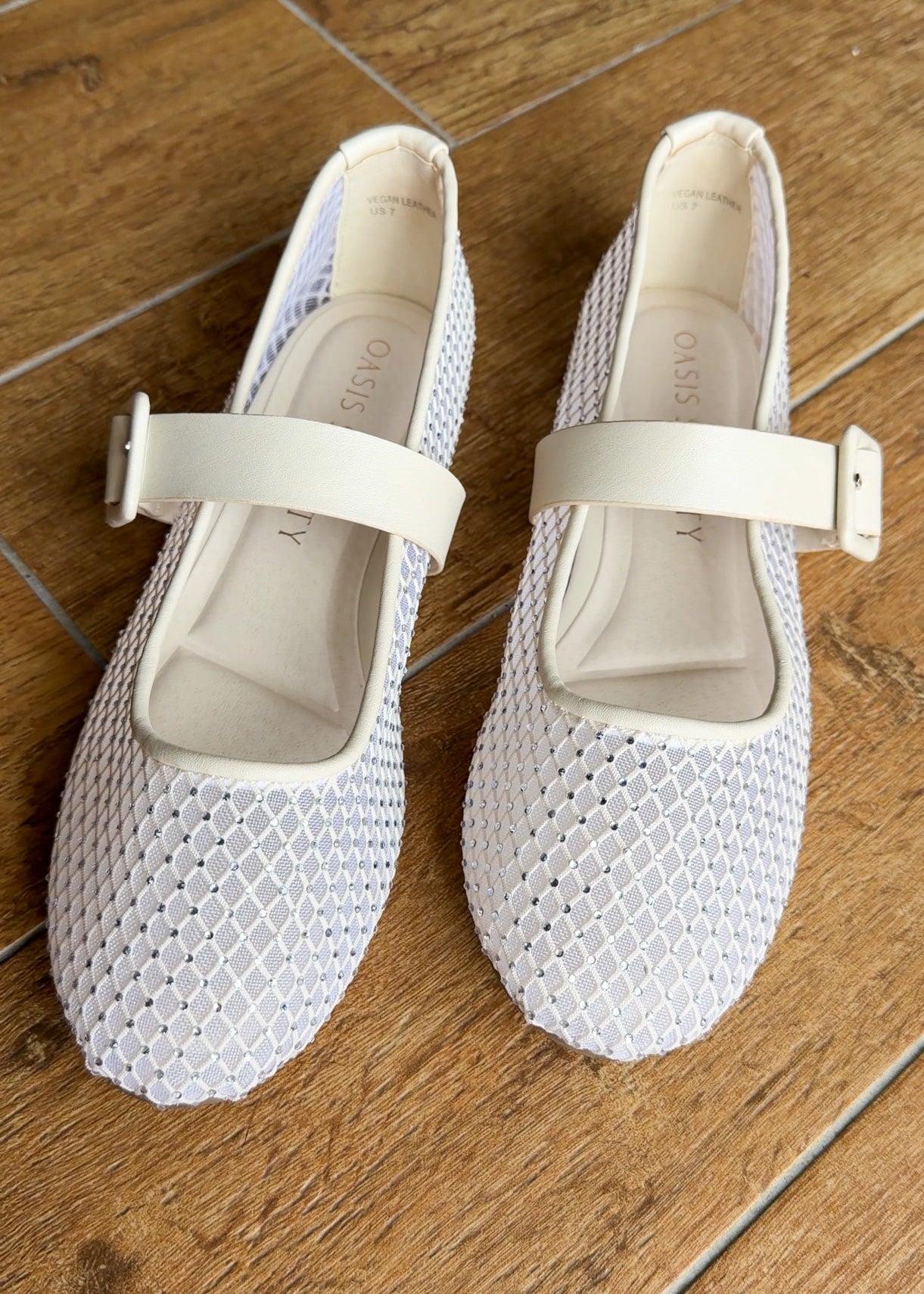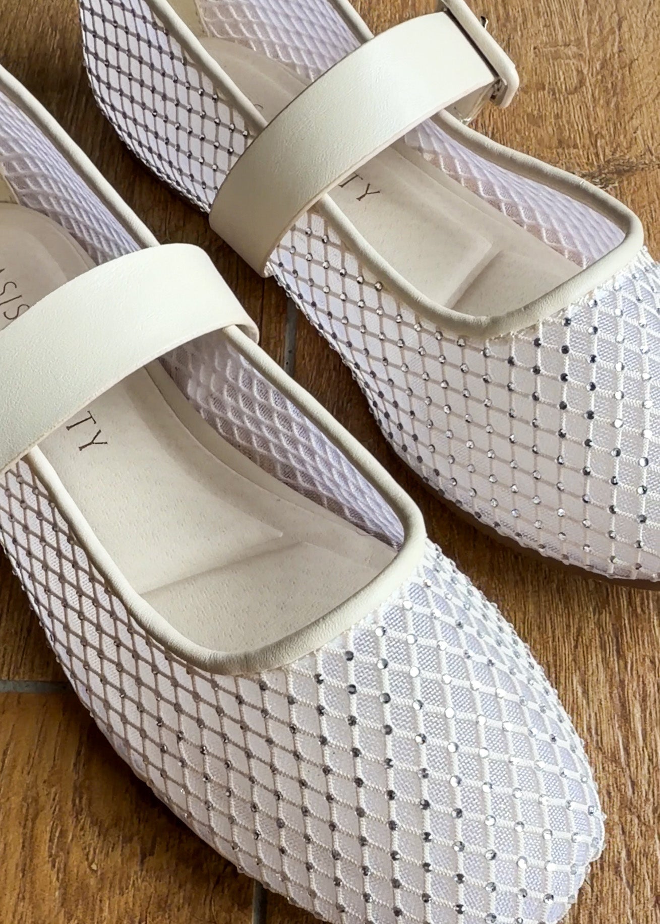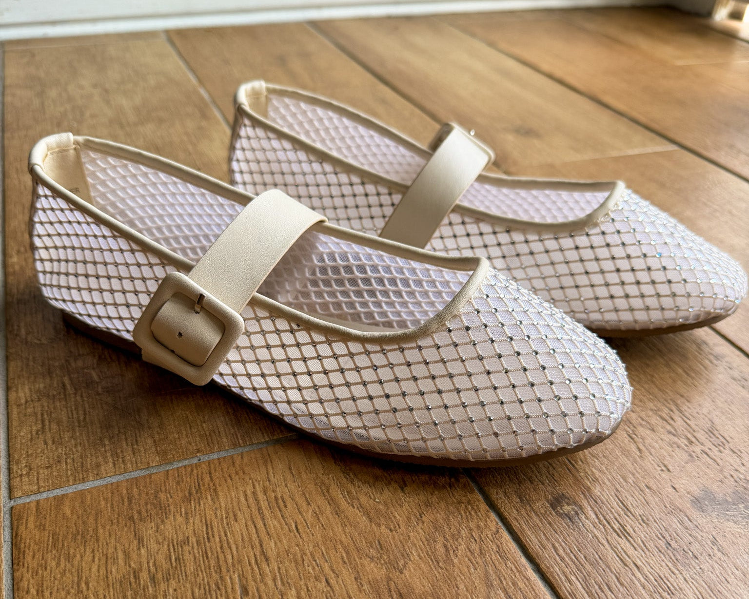 Light, refined, and effortlessly coastal, the Seabrook Flats bring a delicate elegance to everyday dressing. Designed with a breathable woven mesh upper accented by subtle gem detailing, this feminine silhouette feels airy while still offering polished structure. The soft square toe and adjustable strap create a secure, comfortable fit, while the neutral ivory tone makes them endlessly versatile — perfect for everything from Sunday mornings and spring events to casual days around town.