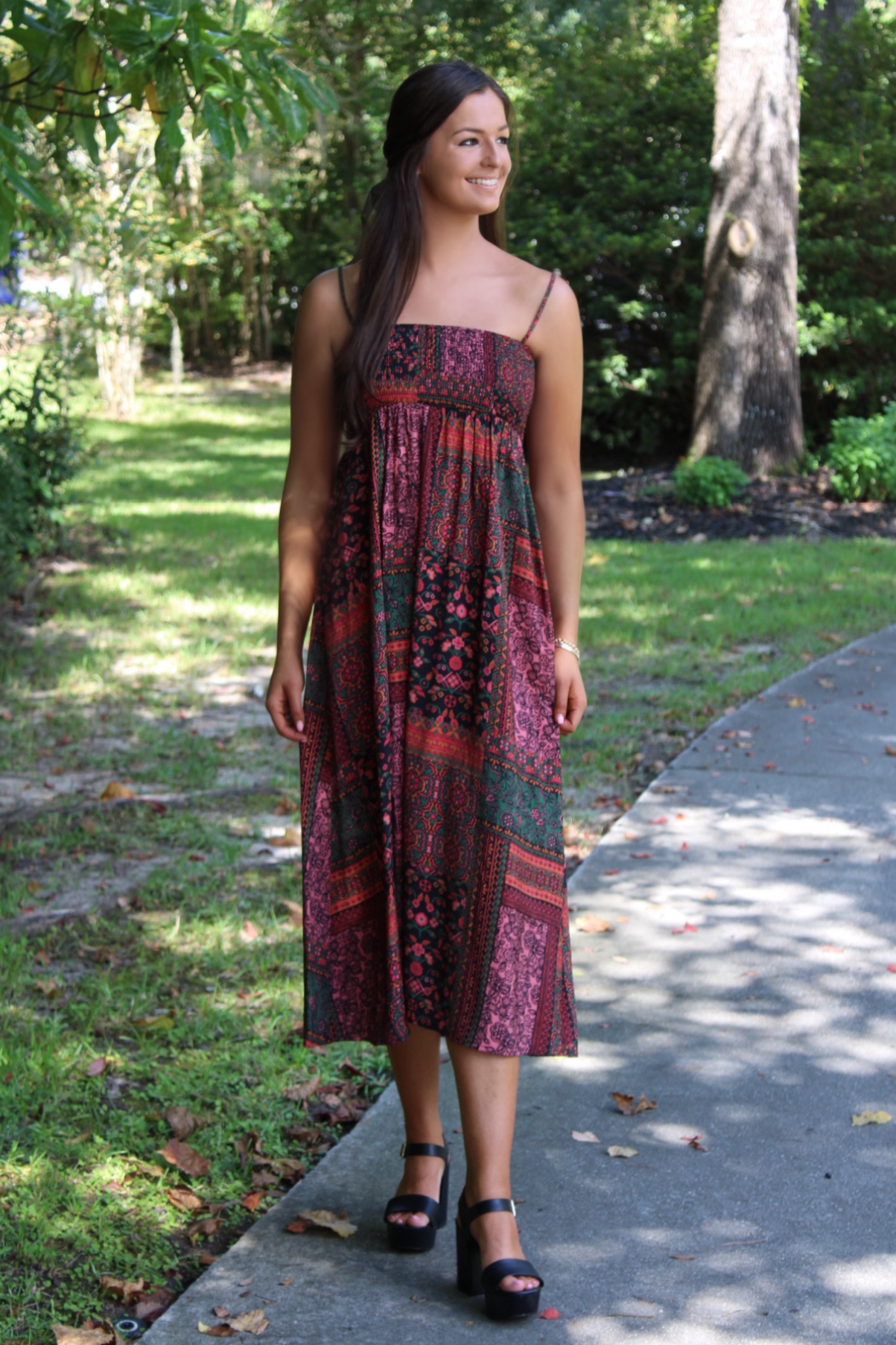 Elevate your style with our Carly Midi Dress! This chic dress features a stunning pattern, making it perfect for the fall season. Bring out your inner fashionista and stand out from the crowd in this midi dress.
