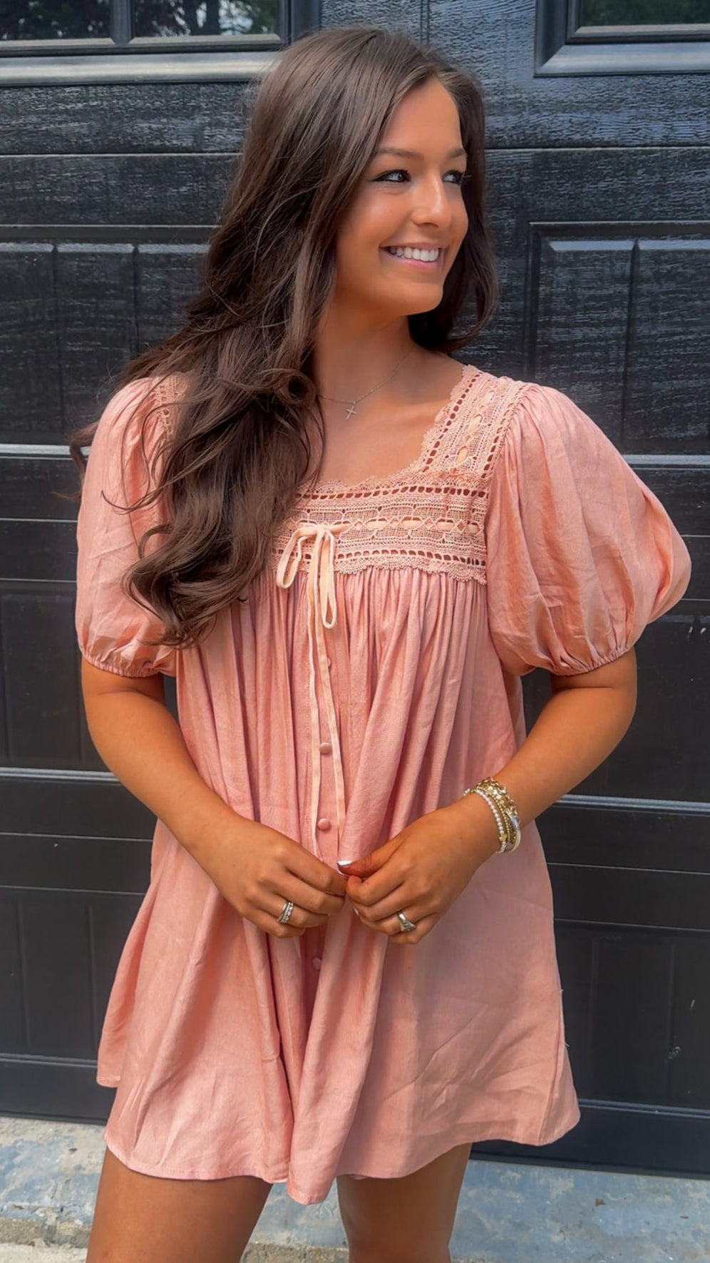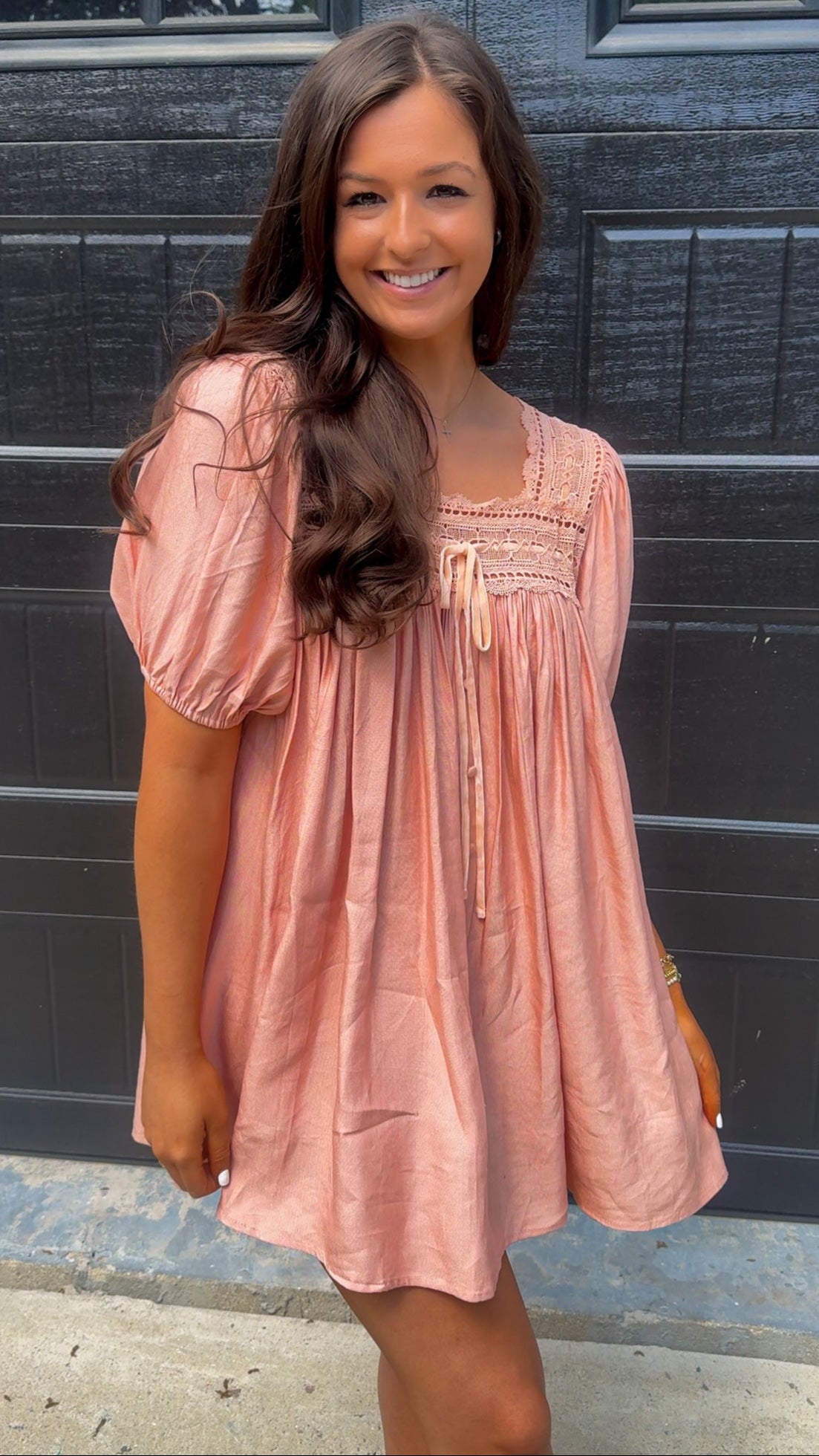 Feel effortlessly chic and feminine in the Nellie Dress. Crafted from a luxe linen-viscose blend, this blush-colored dress offers a relaxed yet polished silhouette, perfect for everything from sunny afternoons to evening outings. The eyelet lace trim and velvet tape tie detail add a soft, romantic touch that will make you feel like the best version of yourself.