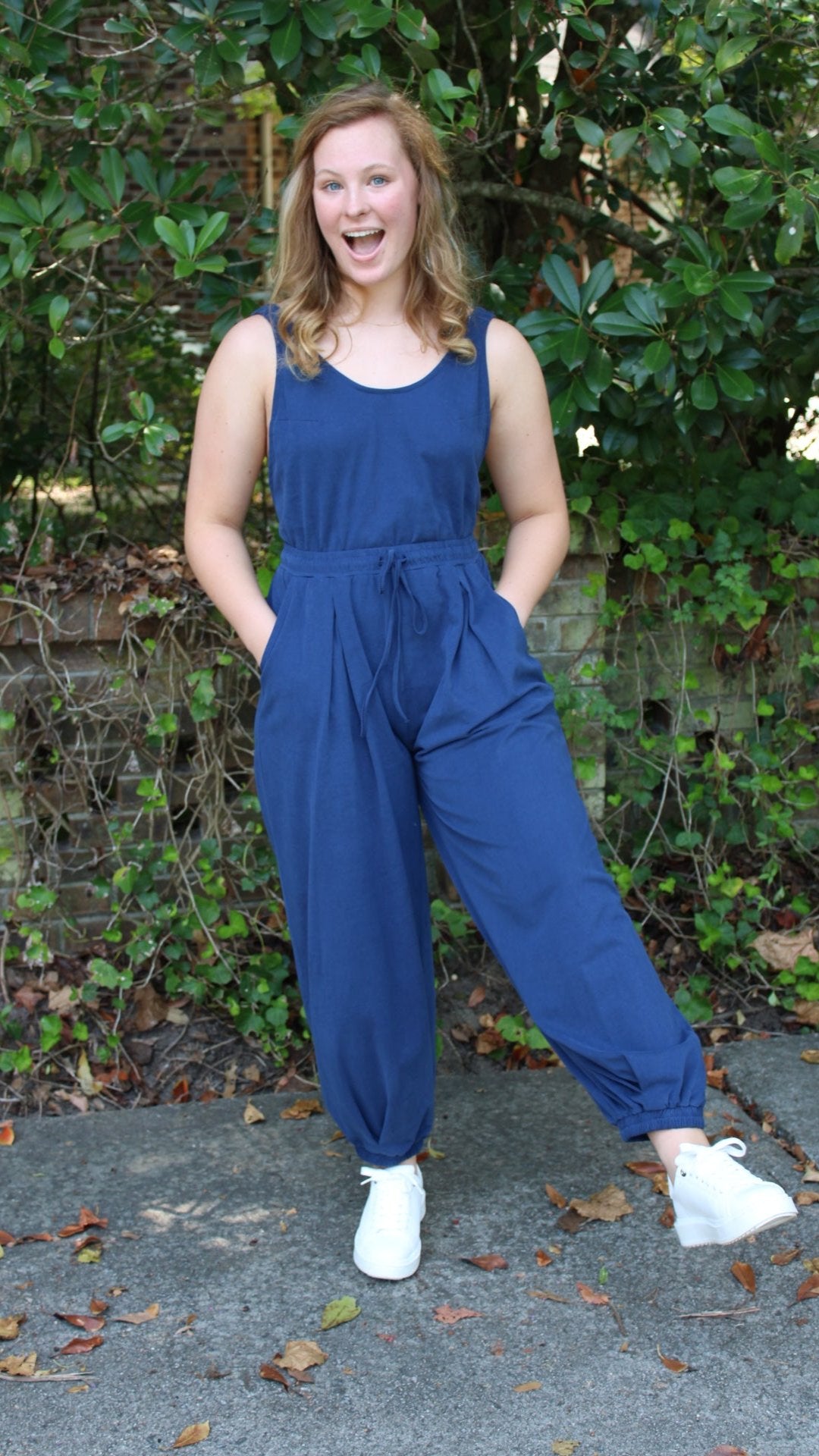 Experience ultimate comfort and style with our navy Out and About Jumpsuit! Designed for both casual wear and athletic activities, this jumpsuit will keep you feeling cool and looking chic. Upgrade your wardrobe with this versatile piece today!