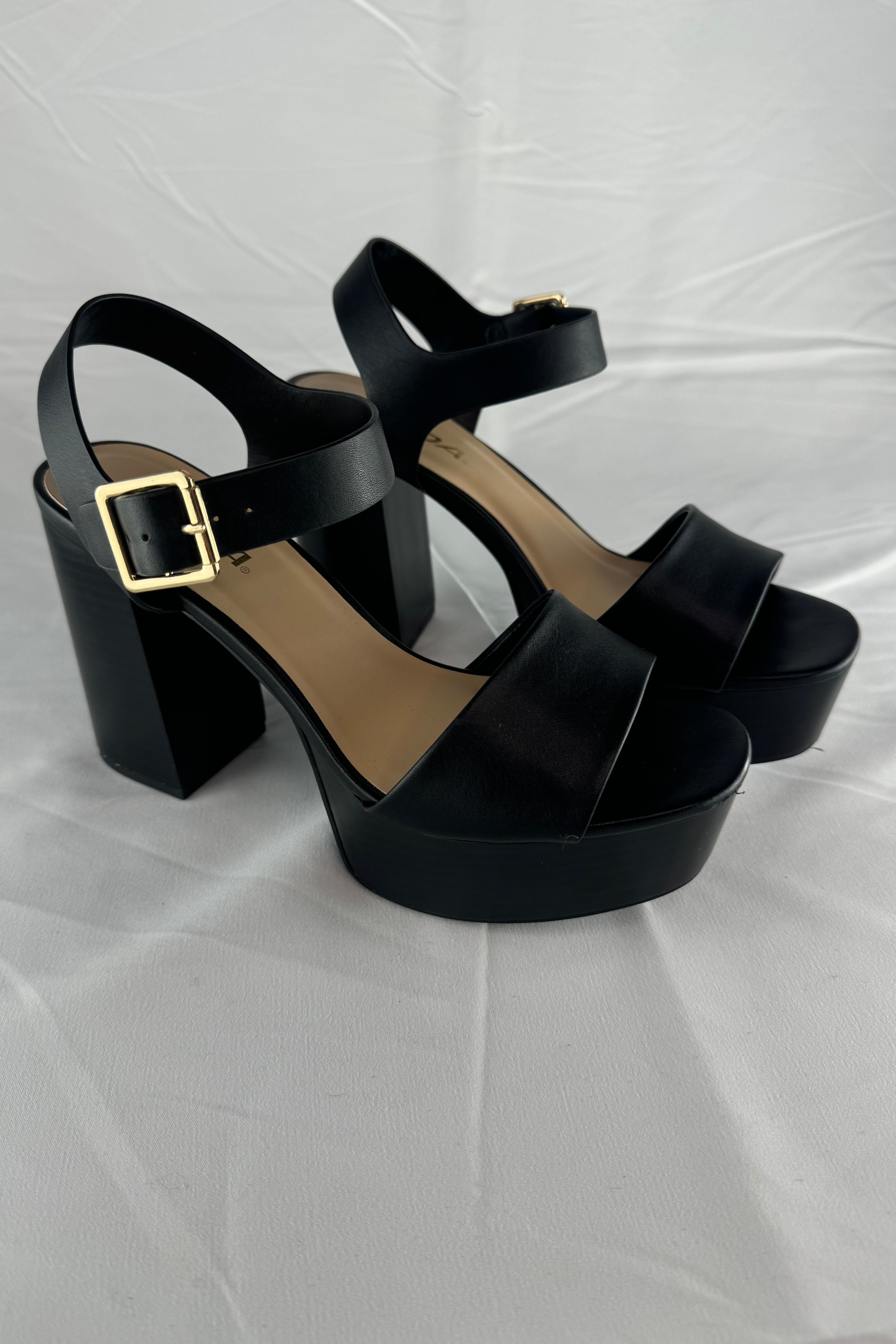 Get ready to elevate your style game with the Peyton Chunky Platform Heel in sleek black. With a chunky platform heel, you'll not only add some height to your look, but also stay comfortable and stable all day long. Perfect for any occasion, these heels will add a trendy touch to any outfit.