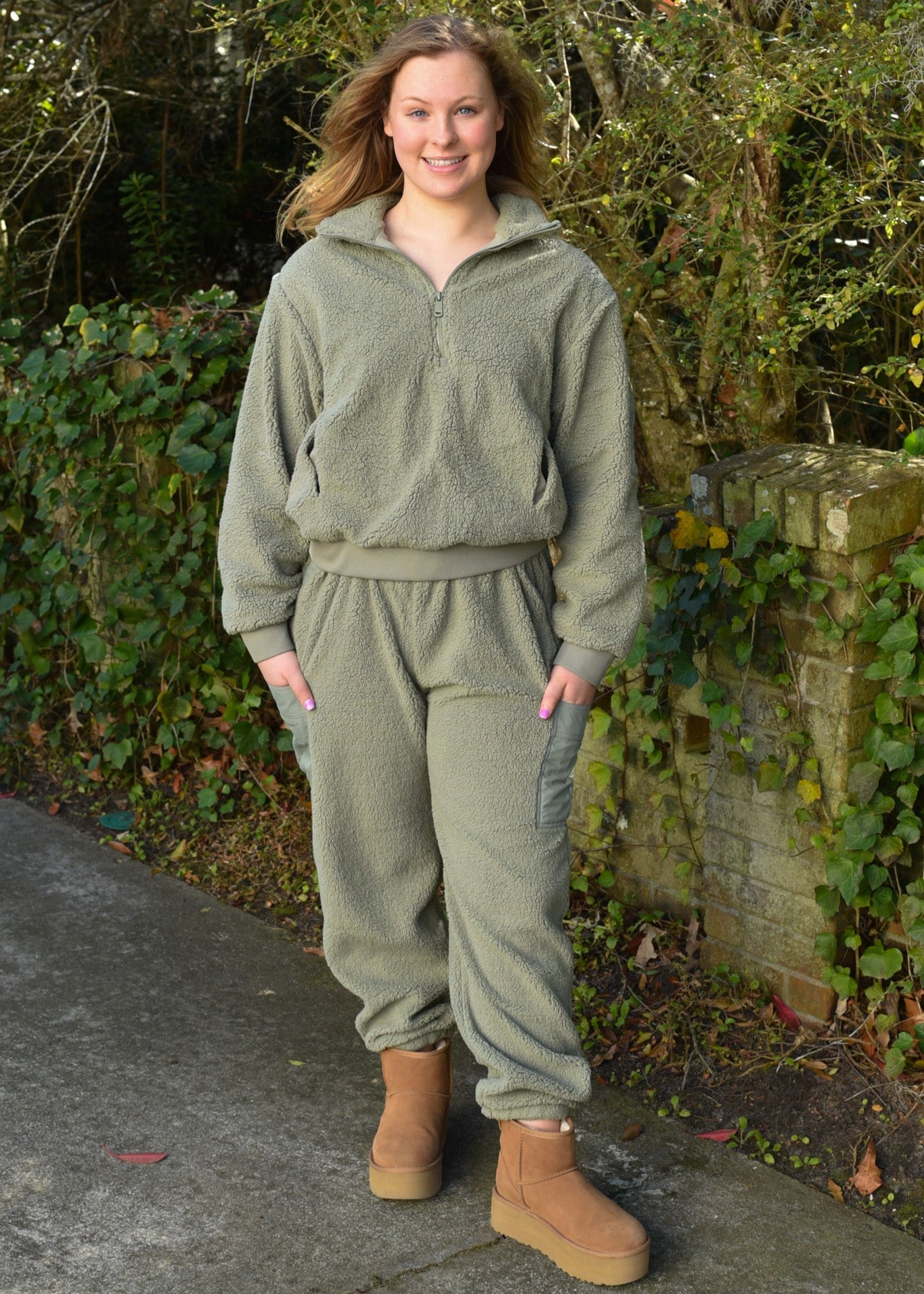 Indulge in ultimate comfort with our Sherpa Joggers in Sage. Made with super soft sherpa fabric, these joggers will keep you cozy and stylish all day long. Perfect for lounging or running errands, these joggers are a must-have addition to your wardrobe.