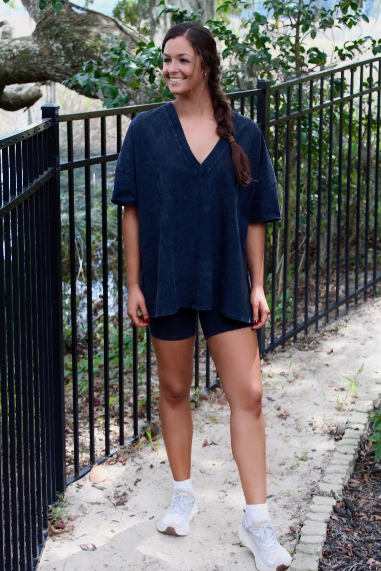 Elevate your loungewear game with our Tara Top & Short Set. The oversized v-neck top and biker shorts offer ultimate comfort and style, perfect for lounging or running errands. The all-black color adds a touch of sophistication. Upgrade your wardrobe now!