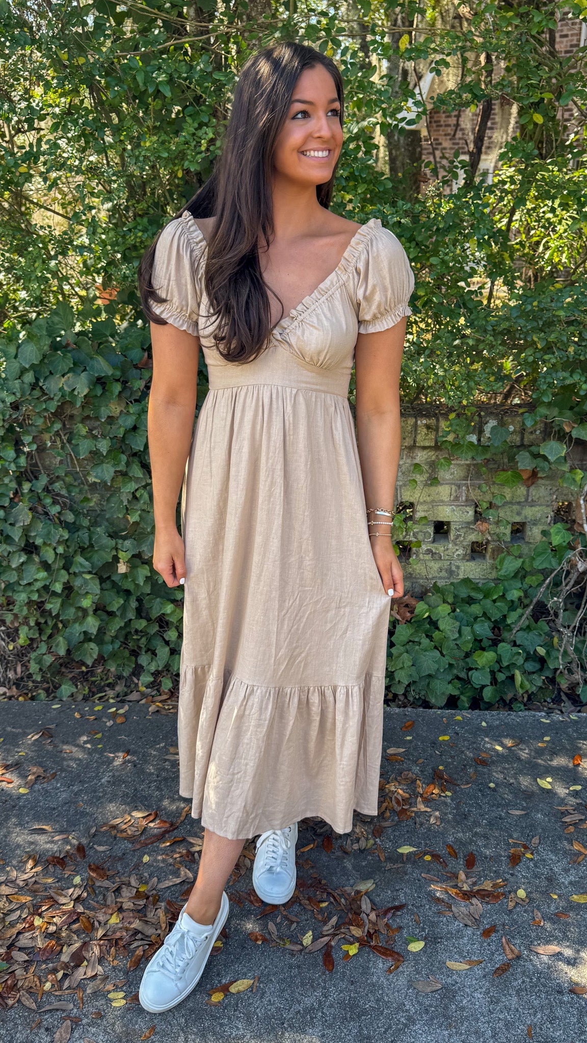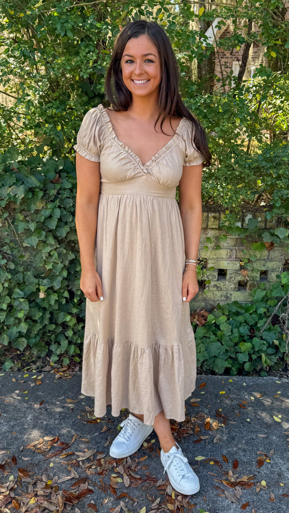 Elevate your everyday style with the Blythe Midi Dress in a rich mocha hue. This effortlessly chic piece is designed to keep you feeling comfortable and looking polished through all your spring and summer adventures.