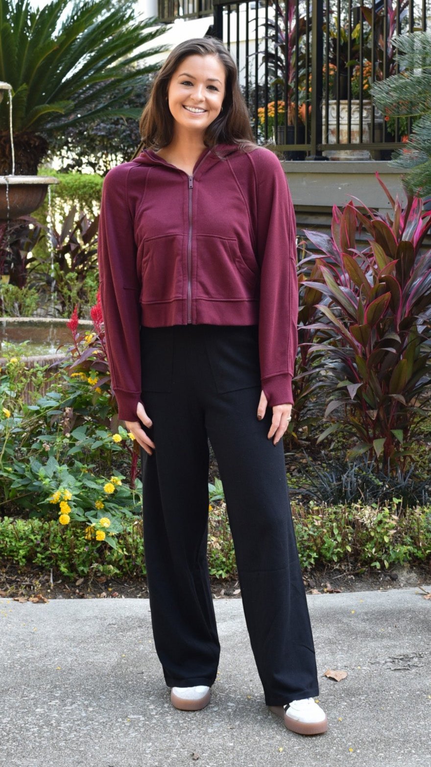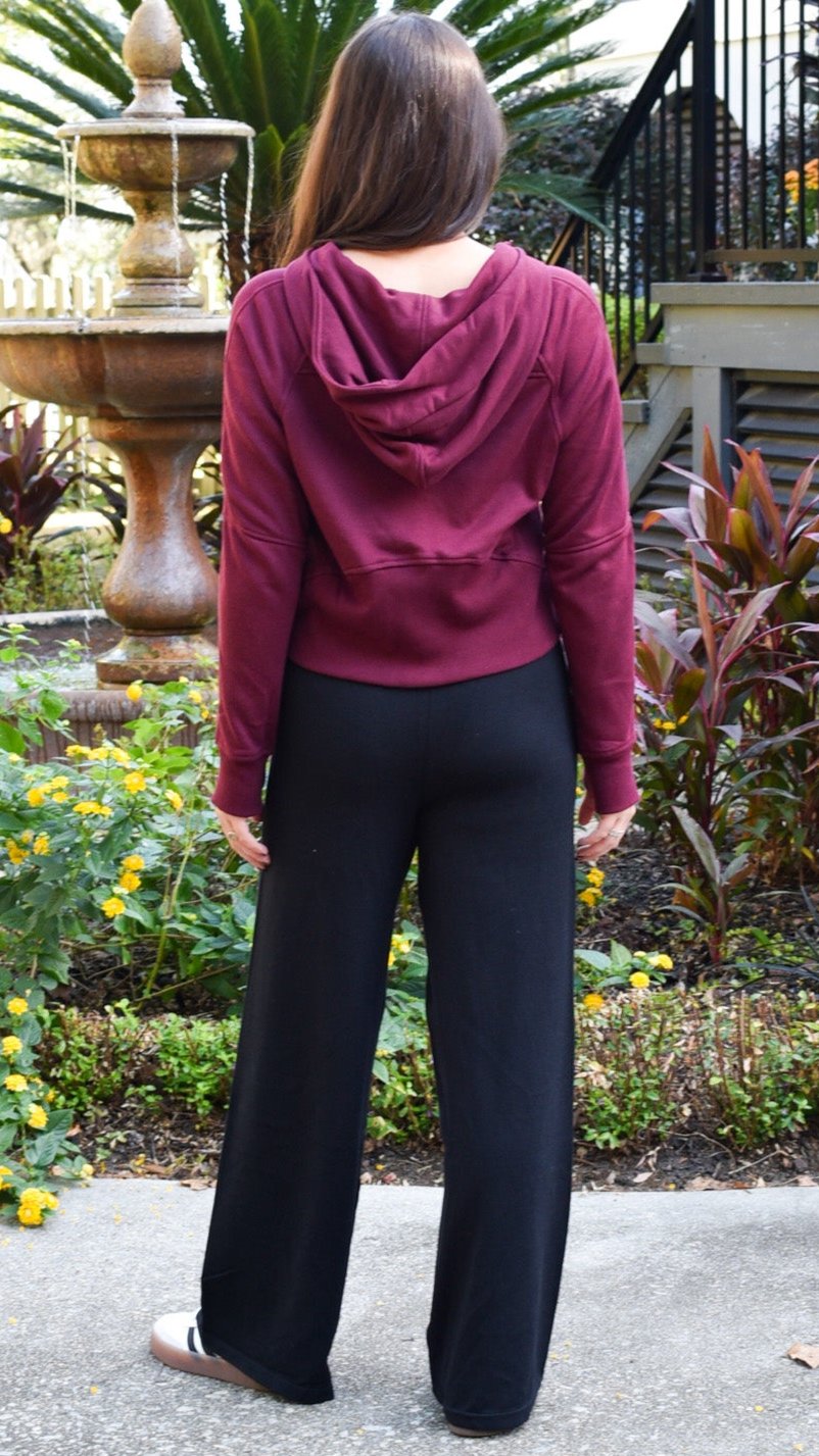 Avery Cropped Hoodie Top - Wine