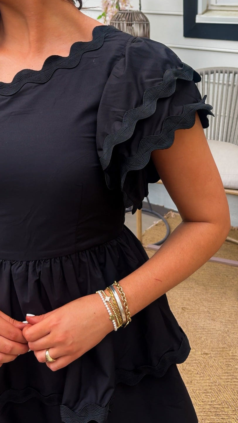 • Tiered Ruffle Layers ➔ Adds movement and a touch of playful sophistication.