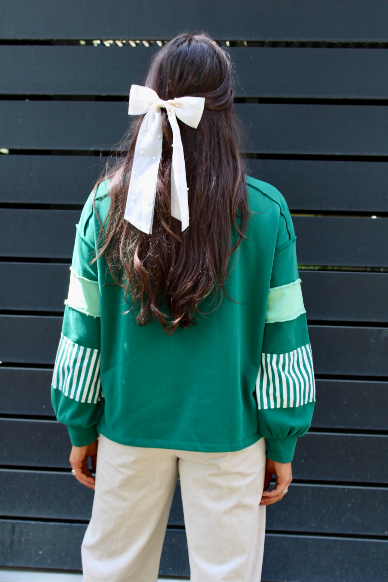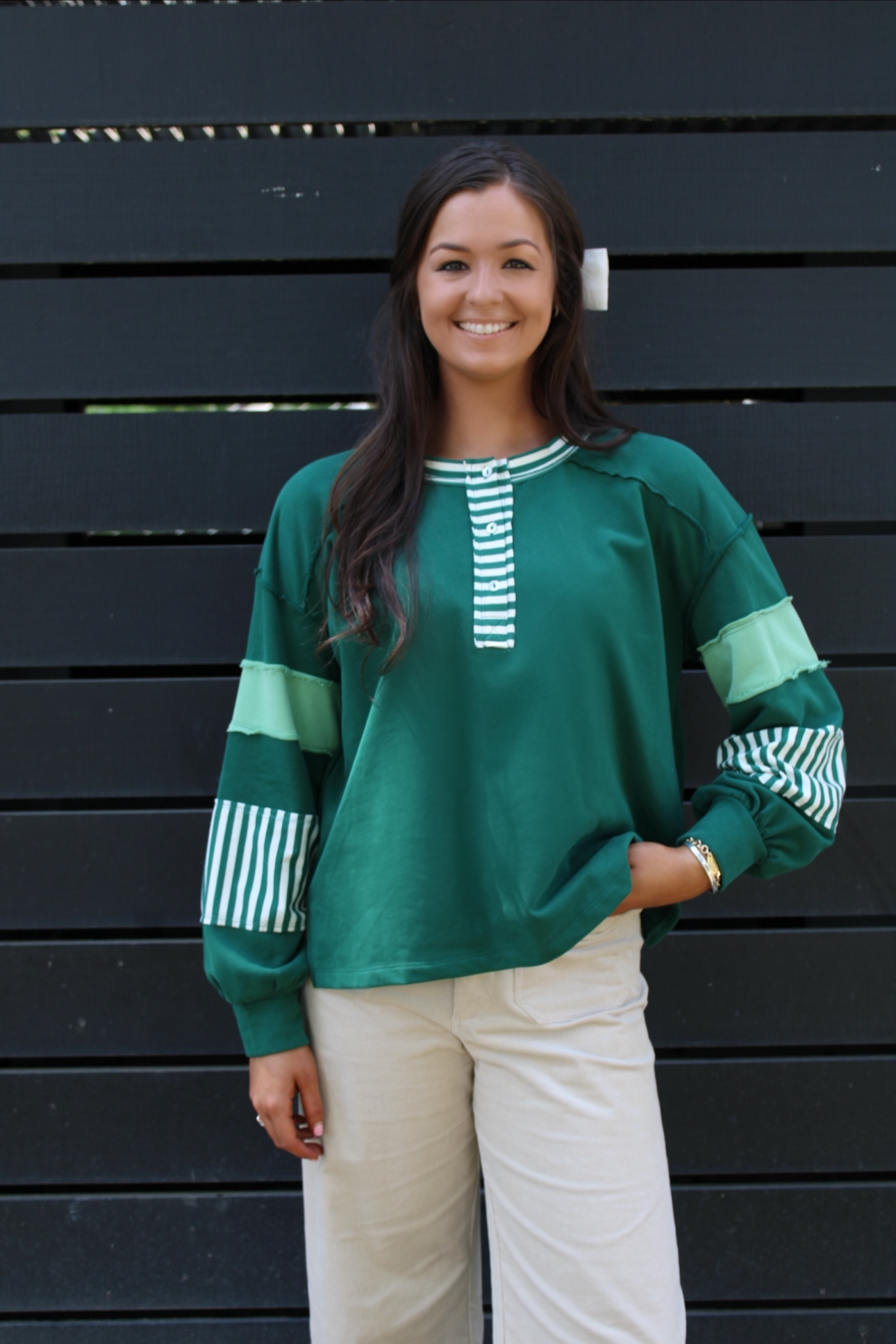 Wrap yourself in style and comfort with our Kyla Sweatshirt Top in green! Made with expertly crafted patchwork and cozy material, this top is perfect for any occasion. Stand out from the crowd and feel confident while staying warm. Get yours now!